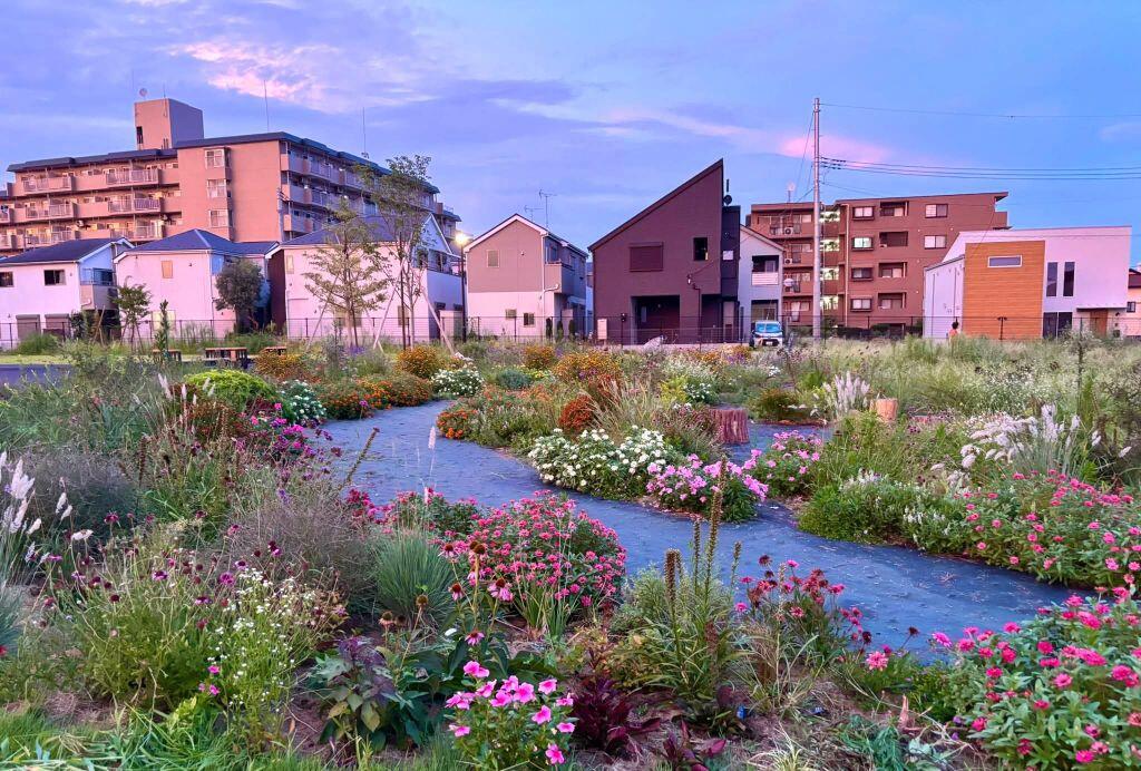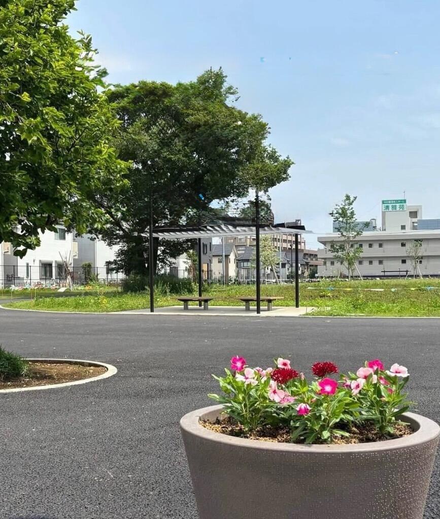 伊藤記念公園台田の杜のお隣に、令和7年にオープンした清瀬花の里公園。公園内には芝生広場や車椅子やベビーカーでも利用しやすい広い園路、多年草を使ったナチュラルガーデンなどがあります。